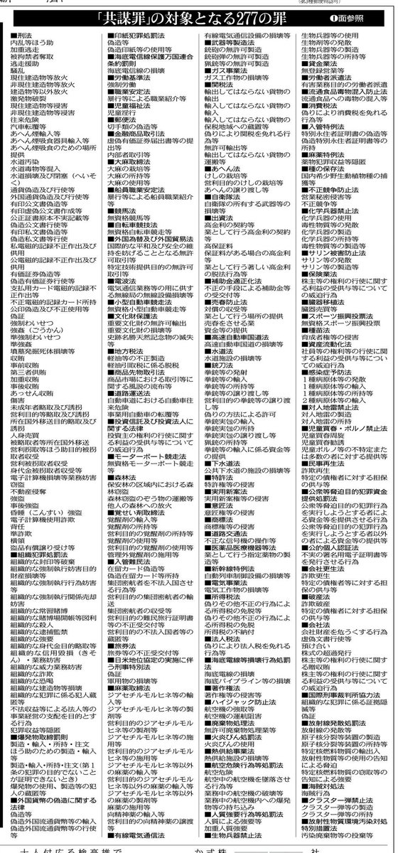 「共謀罪」の対象となる277の罪 (東京新聞 / 2017年03月01日 朝刊)